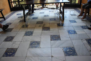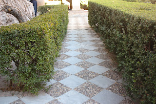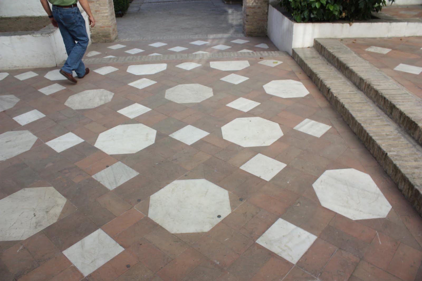 Travelling through Spain and France I realized how many beautiful floor patterns that I walked over. There are so many wonderful artisans in Europe that created these incredible floor patterns with inlaid marble, limestone, wood, brick and more. These patterns would be great to repeat in a project on the floor in the entry, hallway or patio or translated into a fabric or faux painted...inspiration..Enjoy!